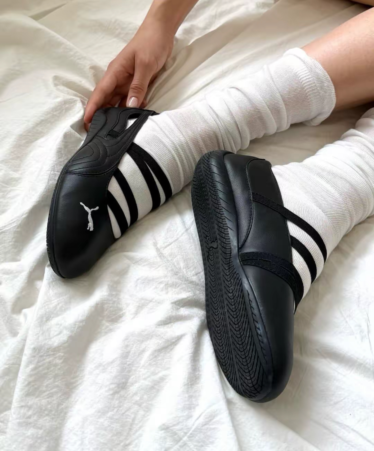 Mẫu giày này là sự kết hợp giữa phong cách thể thao lấy cảm hứng từ đường đua và thiết kế ballet nữ tính, mang đến vẻ ngoài tối giản nhưng đầy cá tính.