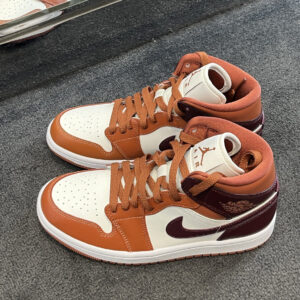 Giày Air Jordan 1 Mid ‘Sky J Orange’ BQ6472-200 bước ra khỏi các màu sắc táo bạo đã thống trị các bản phát hành gần đây, sự lặp lại này có một cách tiếp cận sắc thái hơn. Đế giày được thể hiện trong một màu cánh buồm màu kem, kéo dài từ phần trên đến lưỡi nylon. Phông nền trung tính này tạo tiền đề cho các lớp phủ màu đất, đất sét tô điểm cho bàn chân trước và cổ áo. Cùng một màu đất sét ấm áp tô điểm cho dây buộc và lót, tăng thêm sự gắn kết cho thiết kế tổng thể.