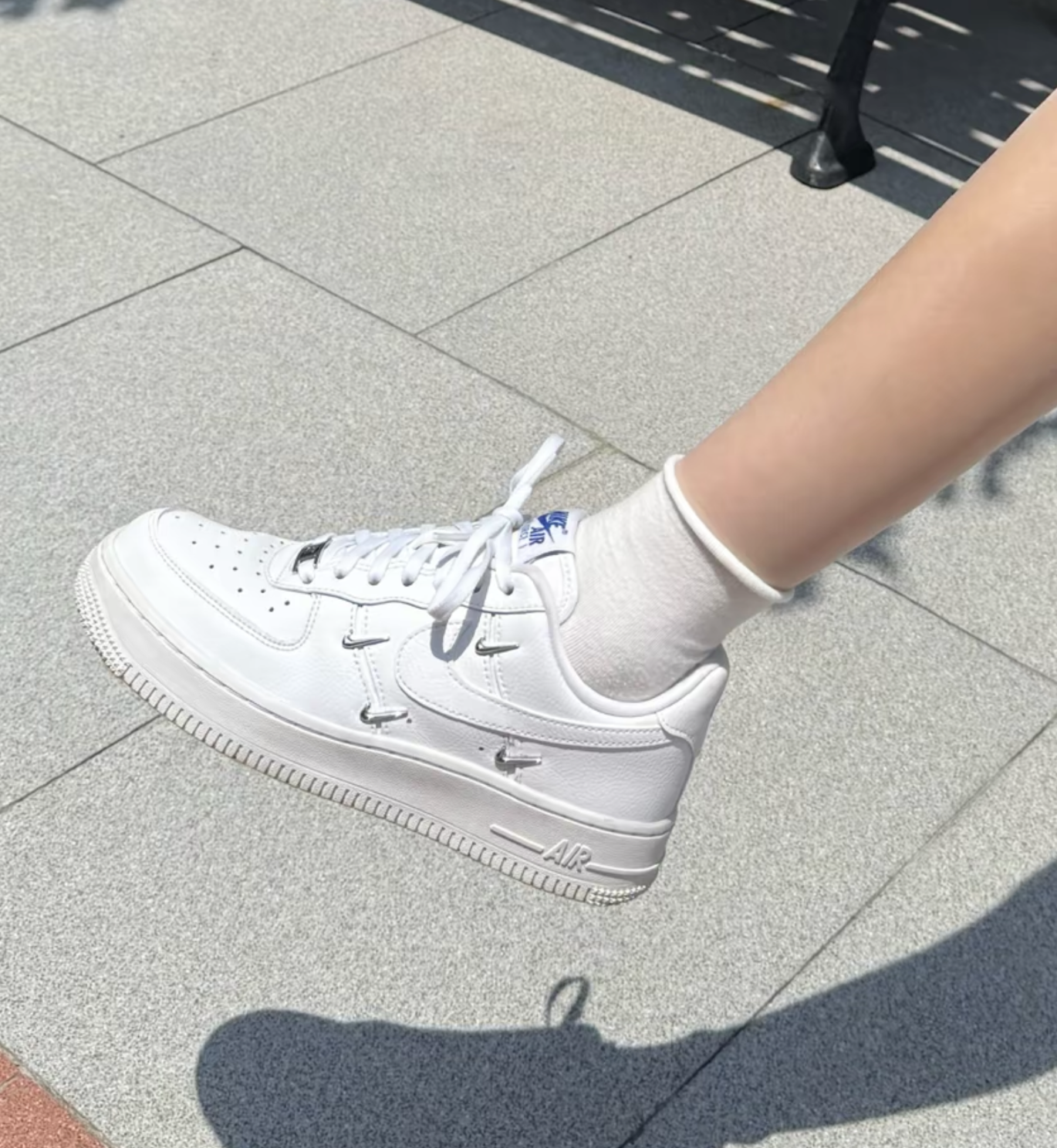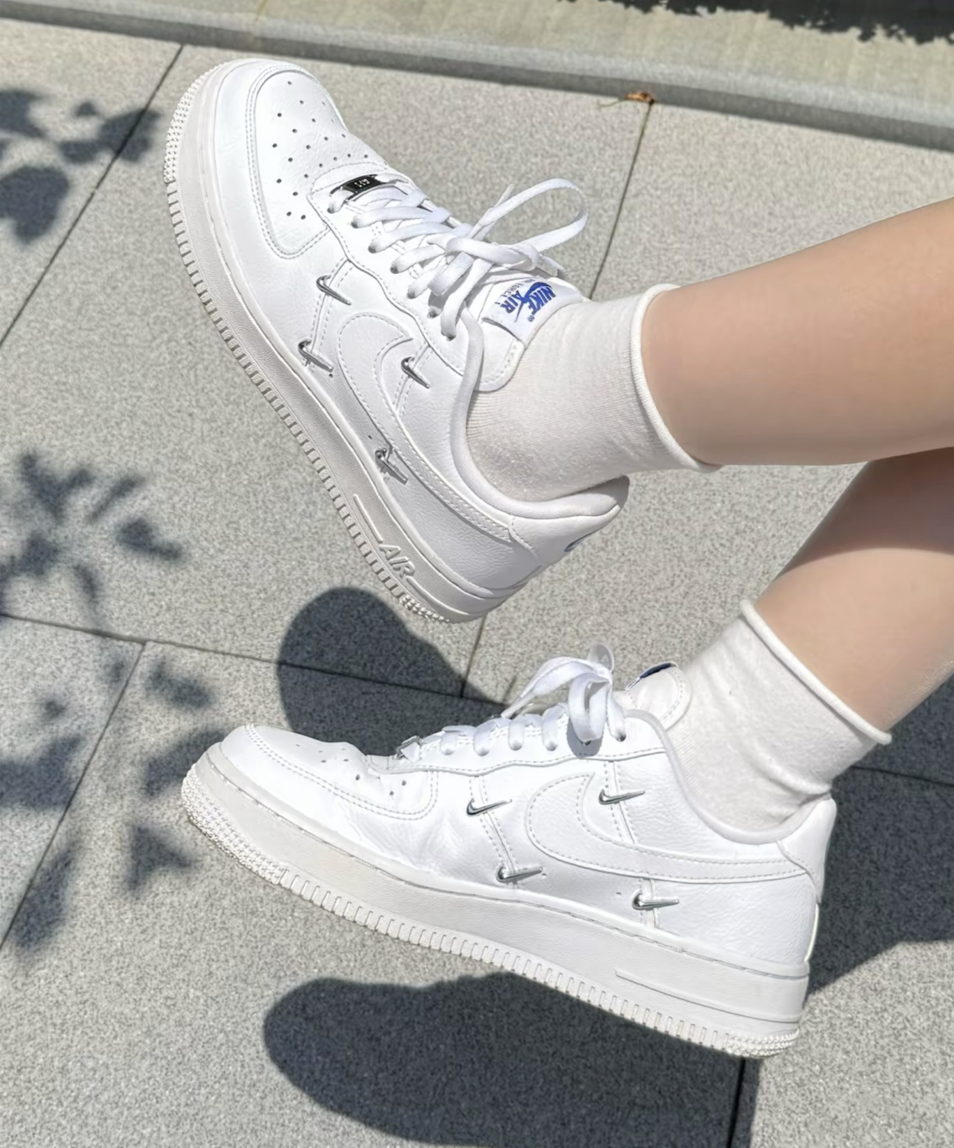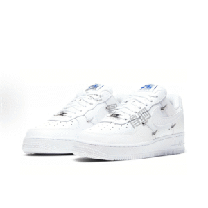 Chi tiết kim loại bạc – điểm nhấn cá tính Phần swoosh và gót giày được phủ lớp ánh bạc metallic tạo cảm giác sang trọng và bắt mắt. Giày Nike Air Force 1 ’07 LX ‘Sisterhood – White Metallic Silver’ [CT1990-100] nổi bật với phụ kiện móc khóa hình bàn tay đan vào nhau – biểu tượng đặc trưng của bộ sưu tập Sisterhood, như lời nhắc nhở về sự gắn kết và đồng hành.