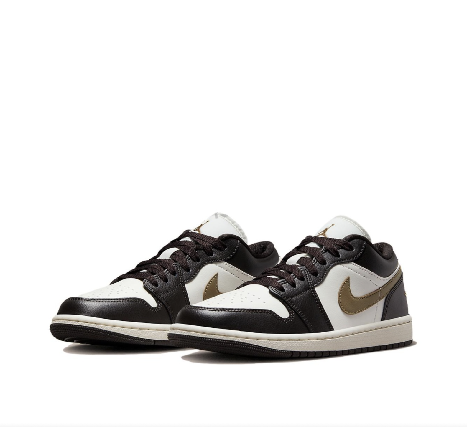 - Phần upper làm từ da cao cấp phối màu Shadow Brown chủ đạo, kết hợp các mảng màu be và trắng nhẹ