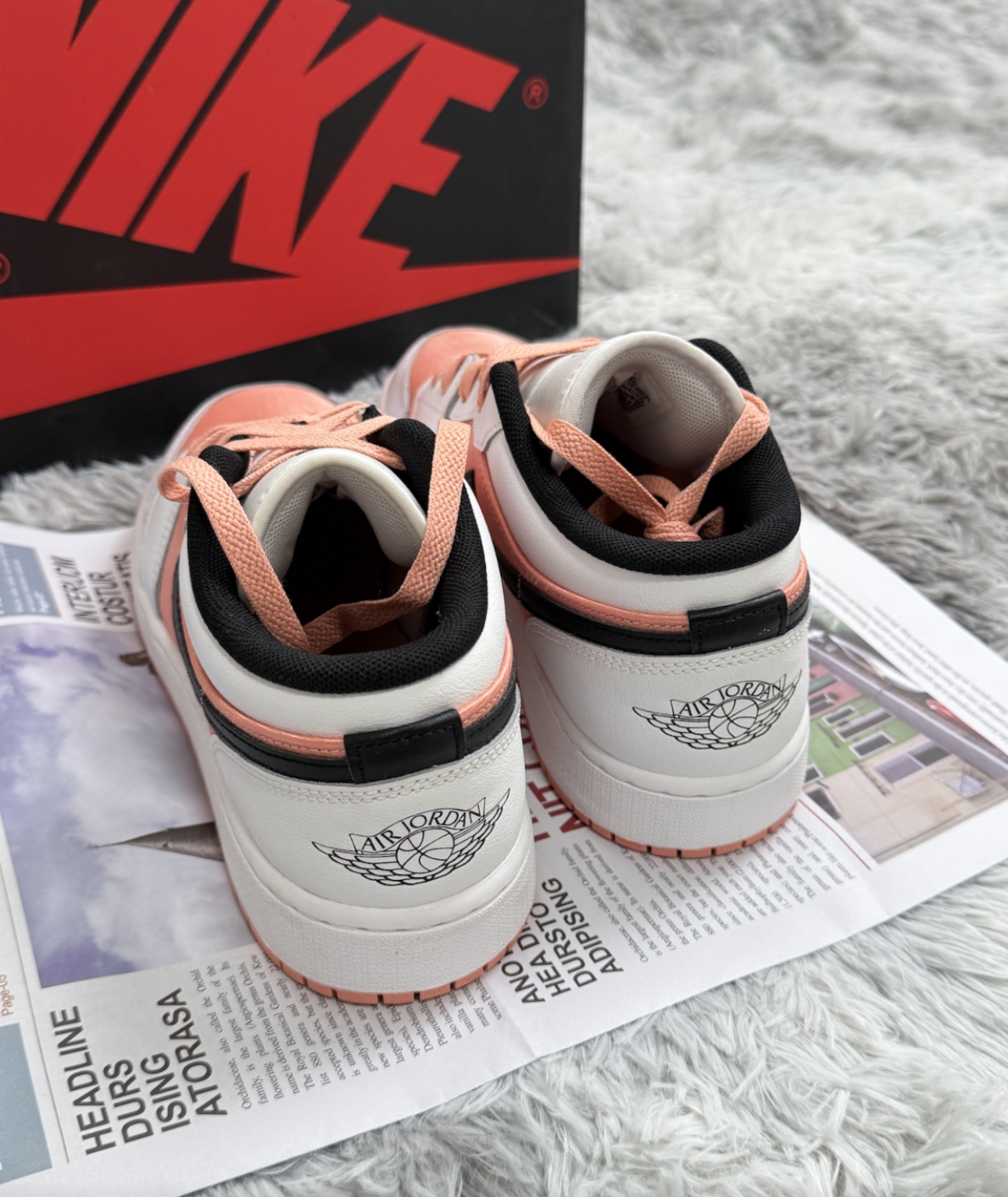 Thiết kế và màu sắc Air Jordan 1 Low GS ‘Light Madder Root’ [DM8960-801] sở hữu phần upper bằng da tổng hợp kết hợp vải canvas, phối màu Light Madder Root độc đáo cùng các chi tiết trắng và hồng pastel. Logo Swoosh trắng nổi bật trên nền cam đất, cùng biểu tượng Jumpman thêu trên lưỡi gà tạo điểm nhấn tinh tế.