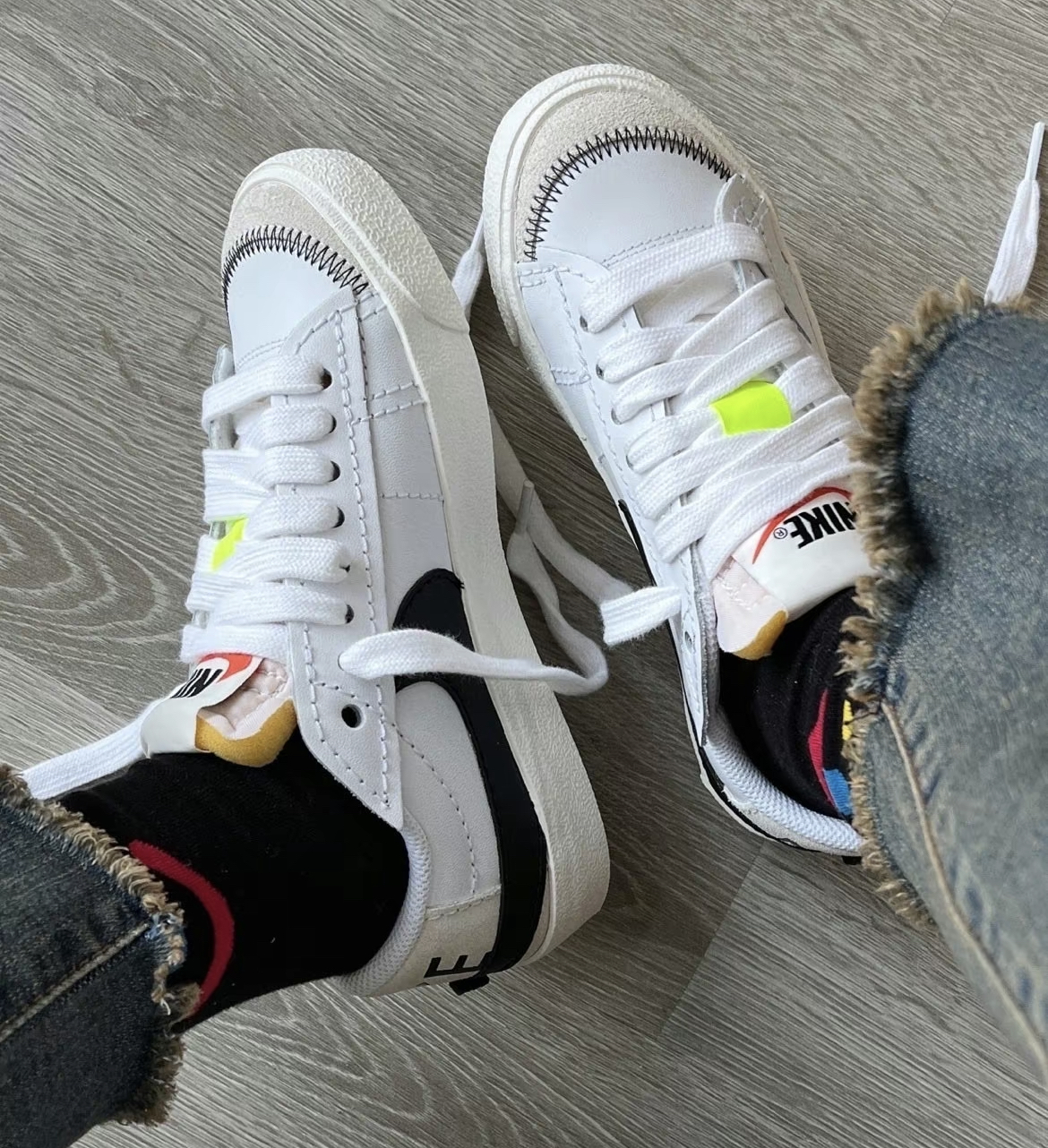 - Thiết kế Swoosh lớn: Được trang bị logo Swoosh lớn màu đen, giày Blazer Low ’77 Jumbo tạo điểm nhấn mạnh mẽ trên nền da trắng.