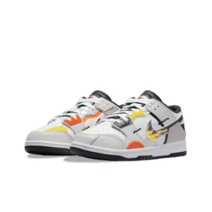 Giày Nike Dunk Low Scrap Mighty Swooshers DX6058-101 là một phiên bản đặc biệt thuộc bộ sưu tập The Mighty Swooshers của Nike, lấy cảm hứng từ phong cách anime và retro gaming. Đôi giày này nổi bật với thiết kế đa lớp, kết hợp giữa màu trắng, xám và đen, cùng với các chi tiết 8-bit stitching và flame-inspired Swooshes, tạo nên vẻ ngoài độc đáo.