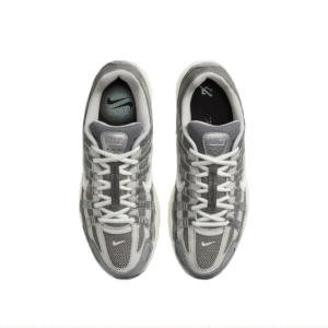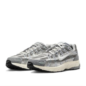 Giày Nike P-6000 “Flat Pewter” mã FN7509-029 sở hữu phần upper bằng lưới mesh màu xám Pewter, kết hợp các lớp da tổng hợp màu bạc kim loại và Light Iron Ore. Thiết kế đa tầng này tạo nên hiệu ứng hình học nổi bật, đồng thời tăng độ thoáng khí và độ linh hoạt khi vận động. Các chi tiết như logo Nike Swoosh, phần lưỡi gà và gót giày đều được hoàn thiện bằng chất liệu metallic, tạo điểm nhấn ánh sáng bắt mắt.