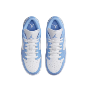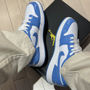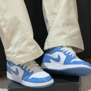Thiết kế và chất liệu [FZ3929-114] Giày Nike Air Jordan 1 Low SE GS ‘Legend Blue Patent’ sử dụng chất liệu da bóng (patent leather) cao cấp, mang lại vẻ ngoài sang trọng và dễ vệ sinh. Phần upper được phối màu xanh Legend Blue kết hợp trắng tinh khôi, tạo nên tổng thể hài hòa và bắt mắt. Logo Jumpman được thêu nổi trên lưỡi gà, cùng biểu tượng Wings ở gót giày, khẳng định chất riêng của dòng Jordan.