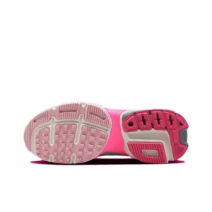 Đôi giày nổi bật với tông màu xám chủ đạo, kết hợp với các chi tiết màu hồng pastel ở logo Nike Swoosh và phần gót giày. Sự phối hợp này tạo nên sự cân bằng giữa sự mạnh mẽ và dịu dàng, dễ dàng phối hợp với nhiều trang phục từ thể thao đến thường ngày.