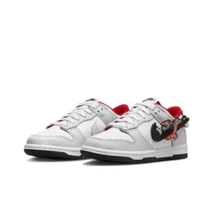 Nike Dunk Low Year Of The Dragon GS FZ5528-101 là một phiên bản đặc biệt được phát hành để kỷ niệm Tết Nguyên Đán 2024, lấy cảm hứng từ năm Giáp Thìn. Đôi giày này mang phong cách mạnh mẽ với sự kết hợp giữa màu trắng, xám nhạt, đỏ đại học và đen, thể hiện tinh thần và biểu tượng của loài rồng.