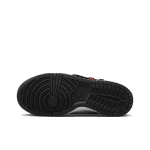 Phần midsole màu trắng giúp cân bằng tổng thể thiết kế, trong khi outsole màu đen có các rãnh giúp tăng độ bám. Lớp lót giày màu đỏ tạo điểm nhấn mạnh mẽ, kết hợp với hình ảnh rồng trên insole, mang lại sự khác biệt so với các phiên bản Dunk thông thường.
