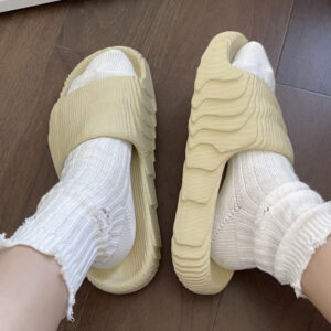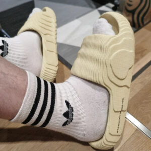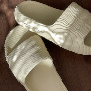 Chúng được làm từ bọt EVA với các vật liệu có nguồn gốc thực vật từ mía. Màu kem của chúng được tăng cường bởi dòng chữ màu đen ở bên cạnh có nội dung “Thương hiệu với ba sọc” 1.