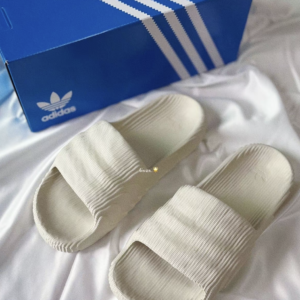 Thiết kế: Adilette 22 có thiết kế sạch sẽ, tối giản với màu xương linh hoạt. Văn bản mang tính biểu tượng “thương hiệu với ba sọc” thay thế logo thông thường, thêm một nét đặc biệt1.