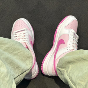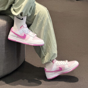 Giày Nike Dunk Low ‘Pink Foam’ HQ1181-661 là một phiên bản dành riêng cho nữ giới của dòng Nike Dunk Low, với tông màu hồng ngọt ngào và trẻ trung. Dưới đây là một số chi tiết về thiết kế và vật liệu của chiếc giày này: