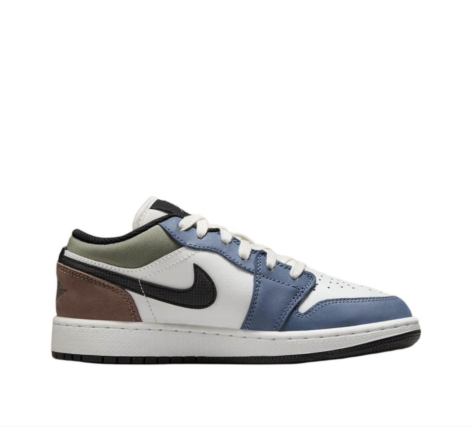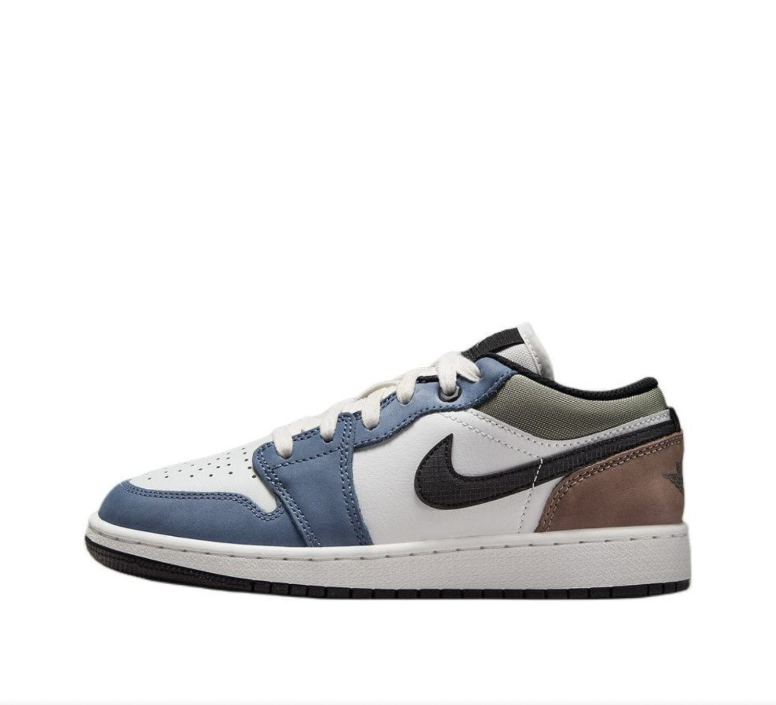 Thiết kế và chất liệu [HV5973-101] Giày Jordan 1 Low Diffused Blue Jade Horizon sở hữu phần upper bằng da tổng hợp kết hợp với vải canvas, mang lại cảm giác mềm mại và thoáng khí. Các chi tiết như logo Jumpman trên lưỡi gà và biểu tượng Wings ở gót giày được xử lý tinh xảo, tạo điểm nhấn nổi bật. Đế giữa sử dụng công nghệ Air-Sole giúp tăng độ êm ái và hỗ trợ tối đa khi vận động.