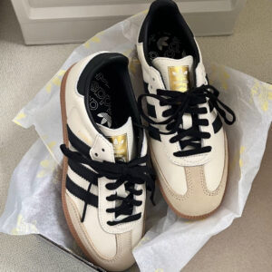 - Chi tiết khác: Dây giày, dải 3 sọc và gót giày đều có màu Core Black. Chữ ‘SAMBA’ được in dọc theo dải 3 sọc bằng chữ vàng kim, và hình Trefoil màu vàng cũng xuất hiện trên thẻ nhãn logo của lưỡi gà.