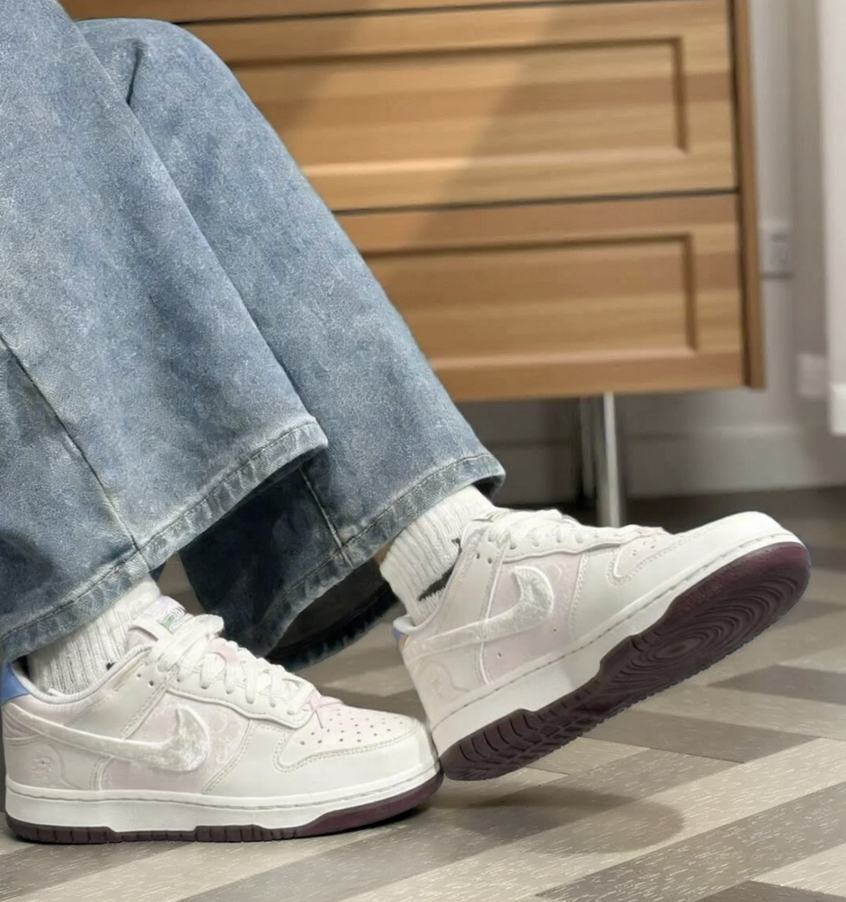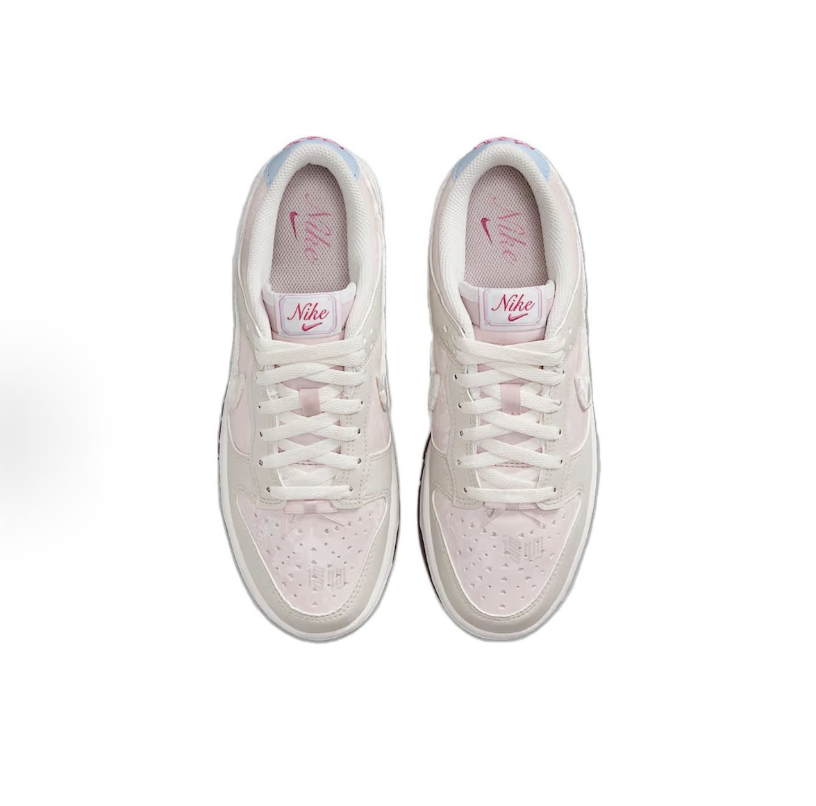 Thiết kế và chất liệu Đôi giày giữ nguyên form dáng Dunk Low cổ điển, phần upper làm từ da cao cấp với tông màu trắng chủ đạo. Điểm nhấn nằm ở các chi tiết Valentine như sắc hồng, đỏ và biểu tượng trái tim tinh tế. Đế cao su chắc chắn giúp tăng độ bám và mang lại sự thoải mái khi di chuyển.