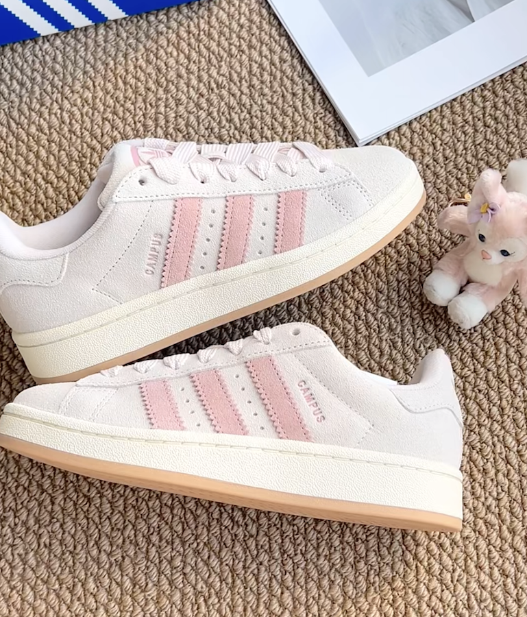 Thiết kế và chất liệu Đôi giày được chế tác từ da lộn cao cấp, bề mặt mềm mại và bền bỉ. Phần upper màu hồng Glow Pink kết hợp với chi tiết Wonder Mauve tạo nên sự hài hòa và nổi bật. Đế cao su dày dặn, mang phong cách Campus 00s, giúp tăng độ bám và tạo cảm giác chắc chắn khi di chuyển.