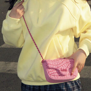 Túi có dây đeo bằng xích tạo điểm nhấn thời trang và có thể điều chỉnh để phù hợp với nhiều phong cách sử dụng, từ đeo vai đến đeo chéo. Với màu hồng đậm nổi bật, túi rất phù hợp cho các buổi hẹn hò hoặc đi làm, giúp tạo nên một vẻ ngoài tinh tế và phong cách.