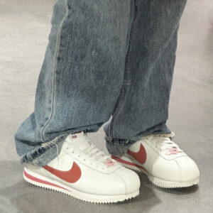 Được chế tác từ da cao cấp, phần trên của giày có đường màu trắng nhạt chắc chắn, mang đến vẻ ngoài sang trọng lớp nền tương phản cho các chi tiết da lộn màu đỏ ở tab Swoosh và mặt sau đặc trưng.