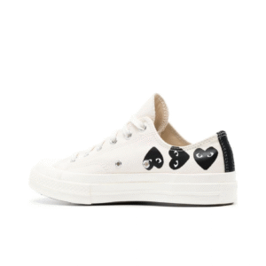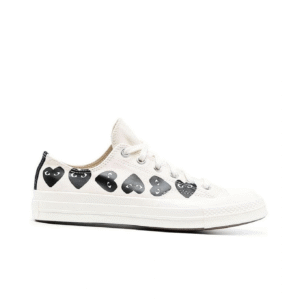 Giày COMME DES GARCONS PLAY x CONVERSE CHUCK 70 MULTI HEART LOW-TOP SNEAKER – BEIGE P1K1262 là sự kết hợp hoàn hảo giữa phong cách cổ điển của Converse và tinh thần nghệ thuật phá cách từ Comme des Garçons Play. Với thiết kế cổ thấp tiện dụng cùng họa tiết trái tim đỏ đặc trưng, đôi giày này mang đến vẻ ngoài vừa tinh tế vừa cá tính.