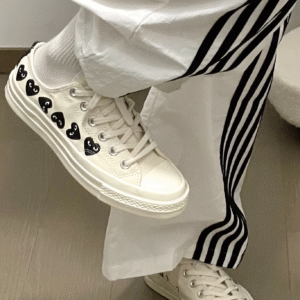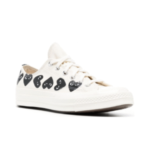 Phong cách linh hoạt: Dễ dàng phối hợp với nhiều phong cách – từ streetwear năng động đến casual thanh lịch. Thiết kế cổ thấp giúp đôi giày phù hợp với cả outfit mùa hè lẫn mùa thu. [P1K1262] Giày COMME DES GARCONS PLAY x CONVERSE CHUCK 70 MULTI HEART LOW-TOP SNEAKER – BEIGE không chỉ là một đôi sneaker, mà còn là tuyên ngôn thời trang dành cho những ai yêu thích sự khác biệt.