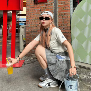 - Phối màu retro: Linen beige làm chủ đạo, kết hợp sắc đỏ đô tạo nên vẻ ngoài cổ điển, đậm chất học đường Mỹ.