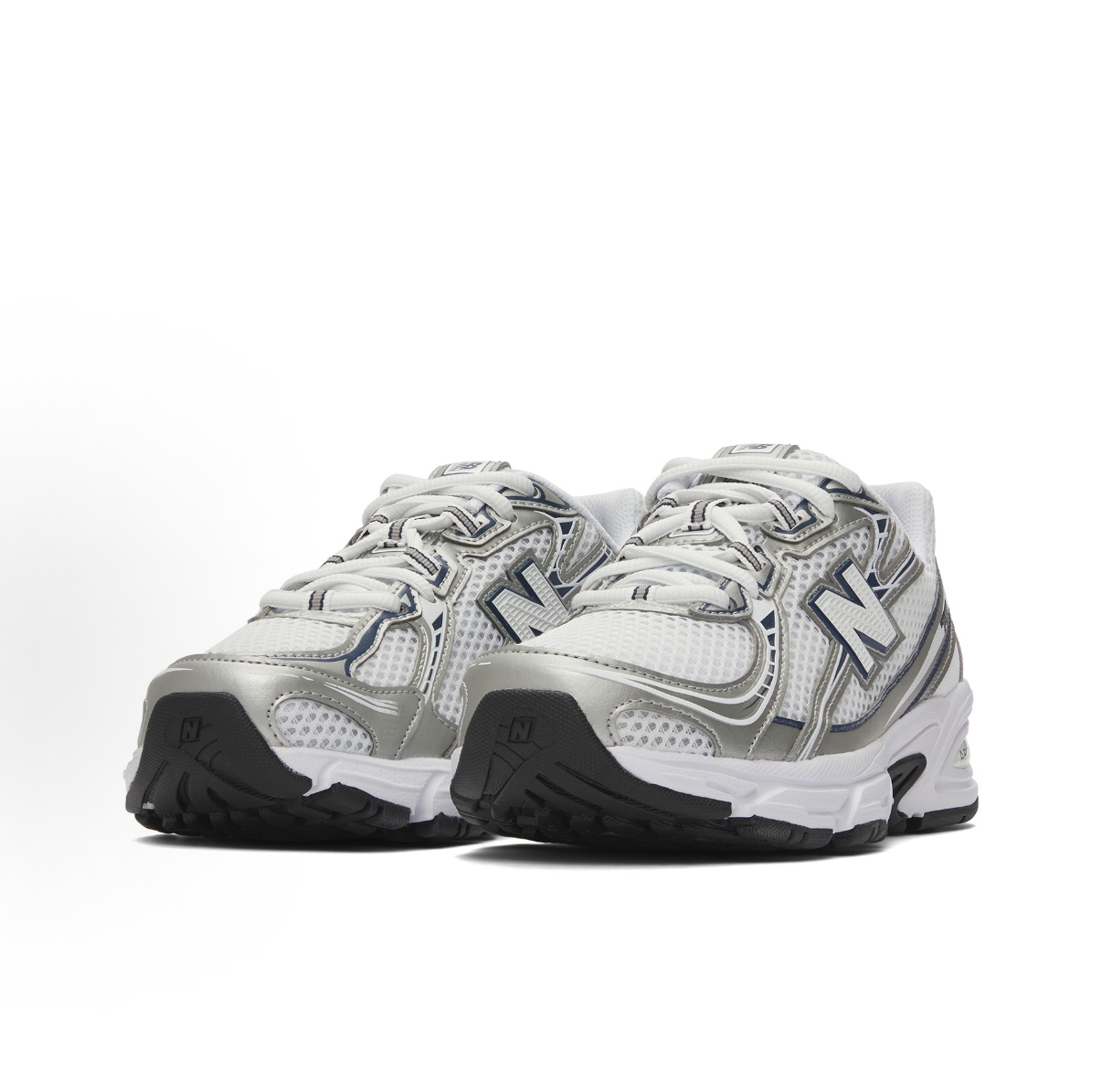 Thiết kế và chất liệu Được chế tác từ da tổng hợp kết hợp vải lưới thoáng khí, sản phẩm mang lại sự bền bỉ và cảm giác nhẹ nhàng khi sử dụng. Tông màu trắng chủ đạo kết hợp cùng chi tiết xám và xanh navy tạo nên sự hài hòa, dễ phối hợp với nhiều phong cách khác nhau. Logo “N” đặc trưng của New Balance được đặt nổi bật trên thân giày, giữ nguyên nét biểu tượng của thương hiệu.